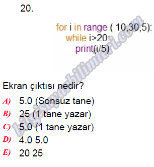 9.Sınıf Bilgisayar Bilimi 2.Dönem 2.Yazılı Sınavı-2