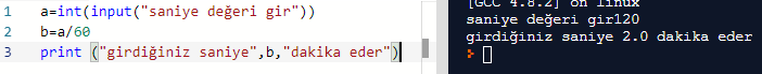 İnput () Fonksiyonu Örnek-4: Klavyeden girilen saniye değerini dakikaya çeviren python kodu