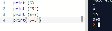 ** 1.satırda yer alan(5) ifadesi matematiksel bir ifade olduğu için direkt 5 olarak ekranda çıktı